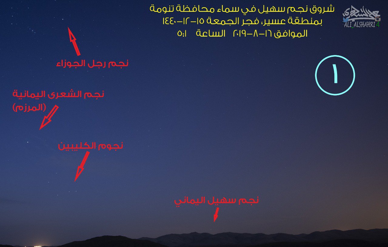 توثيق مصور لظهور نجم سهيل من سماء تنومة فجر الأربعاء 14 11 1437 الموافق 17 8 2016 تنومة